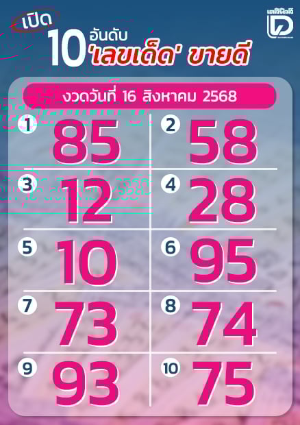 เปิด 10 เลขเด็ด งวด 16 ส.ค.68 งวดนี้ทะเบียนรถ 'หลวงปู่ศิลา' มาแรงมาก 85,58 ขายชุดละ 1,200 ใบละ 200 บาท